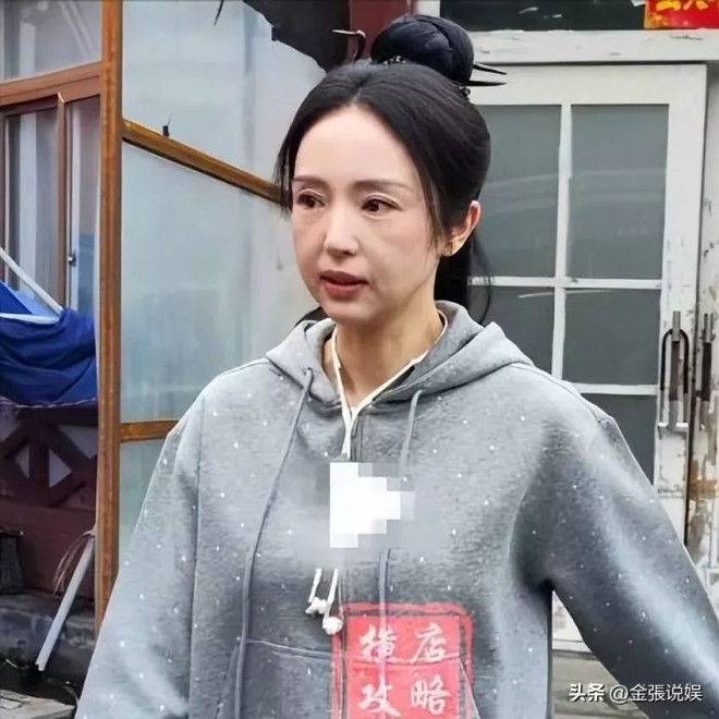 路人拍摄的视频里,她整个人的状态肉眼可见地显老,眼角的细纹密密麻麻堆在一起,法令纹深得像刀刻出来的,笑起来更是加深了这种沧桑感。