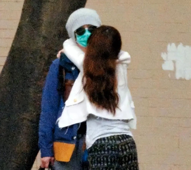从照片上可以看到,两人旁若无睹的在大街上亲密拥抱。