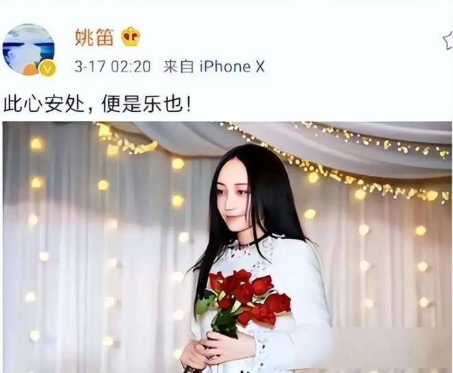 而更巧合的是,当初婚外情的另一位主角姚笛,刚发布了自己结婚的事情。