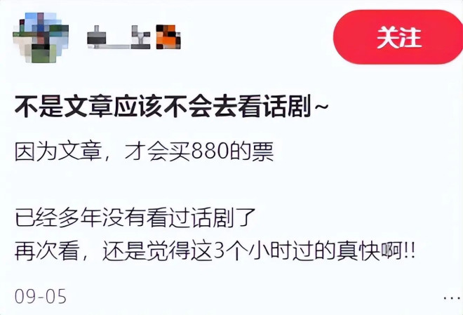主演的话剧基本上都是爆满的状态,甚至还有网友花费880元只为他主演的这场话剧。