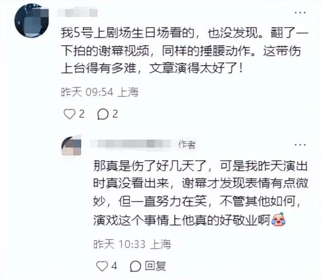 甚至还有网友透露道,文章近些日子都是在带伤演出,只为不辜负大家的期待。