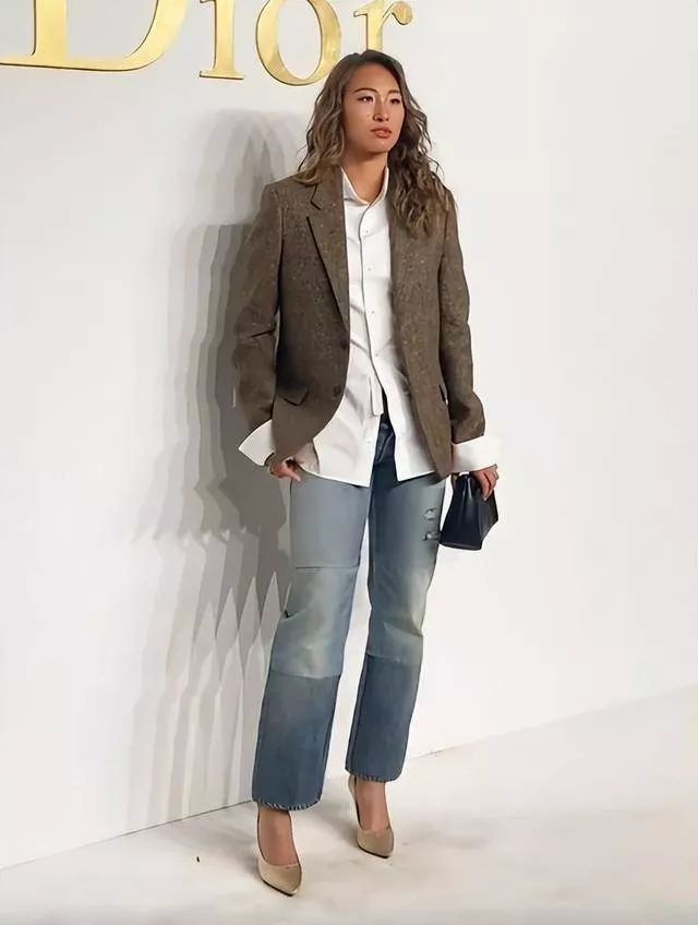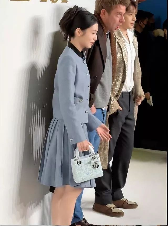 别人都穿礼服,她直接套了件黑色oversize西装,头发随便扎个低马尾,手里虽然拎着迪奥包包,被网友调侃“像来三里屯逛街的路人”。
