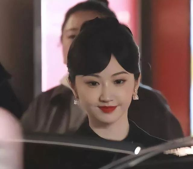 发型盘成低丸子头,耳边几缕碎发随意散落,妆容是那种雾面哑光唇,眉眼轻描淡写,整个人看着像刚从豪门宴会下来,优雅得一批。