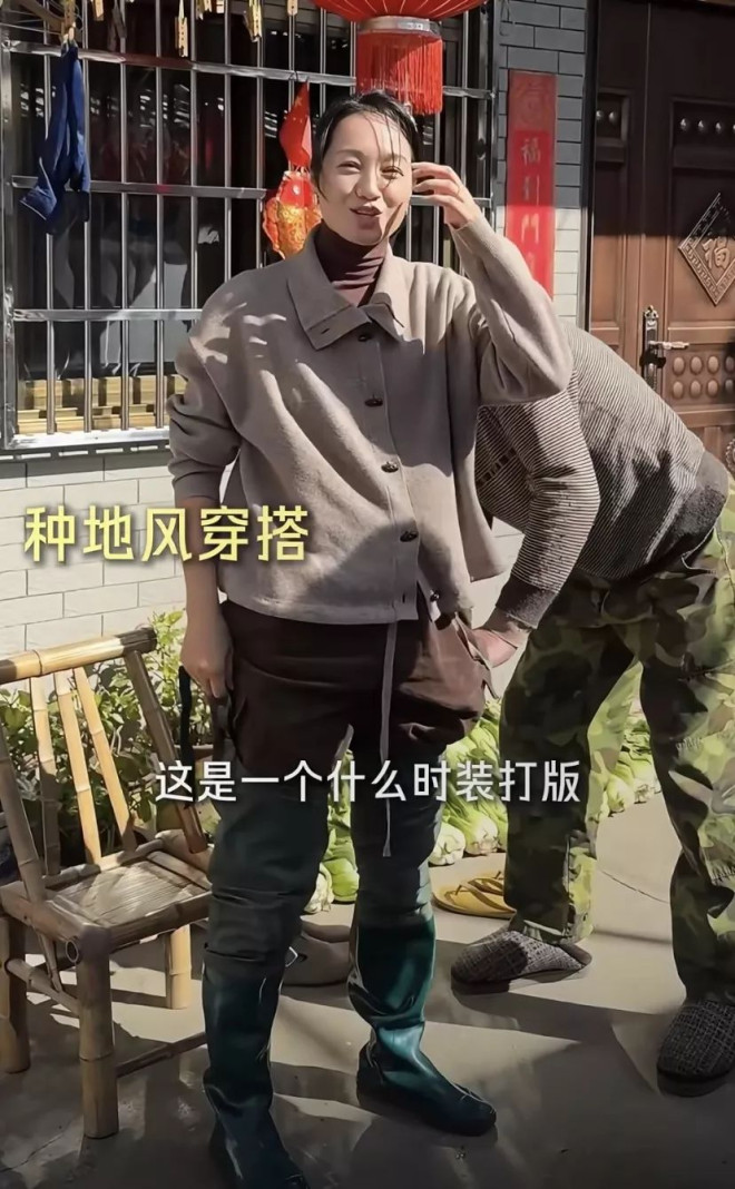 好不容易回一次老家,朱丹要体验下田摘菜的生活。她脱掉了厚厚的羽绒服,爸爸帮她穿上长长的水鞋,这打扮和村里的农民没什么区别。