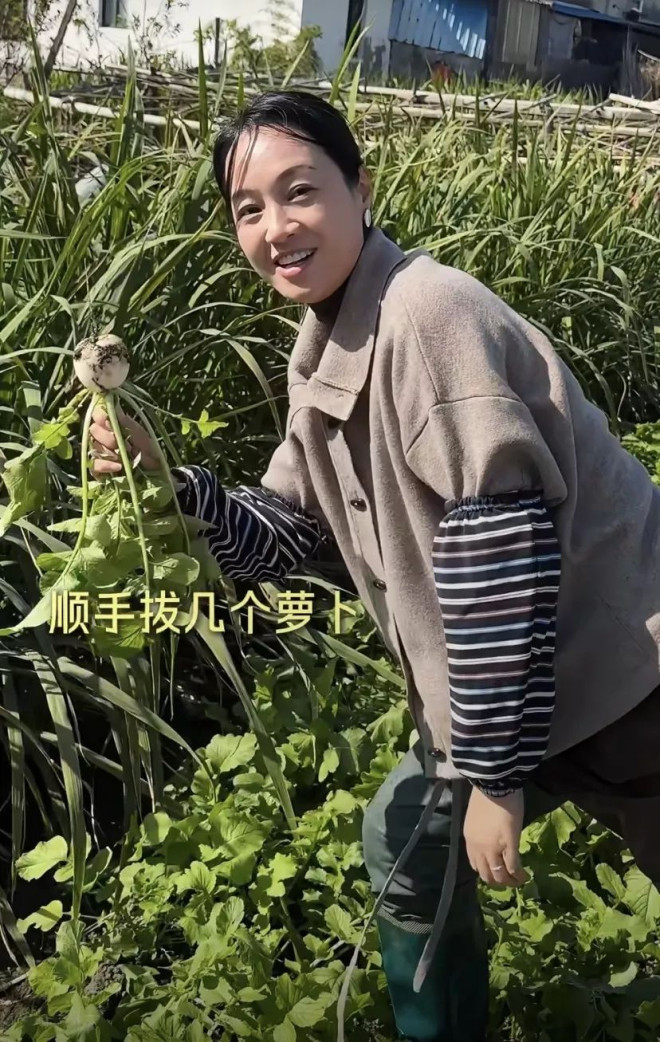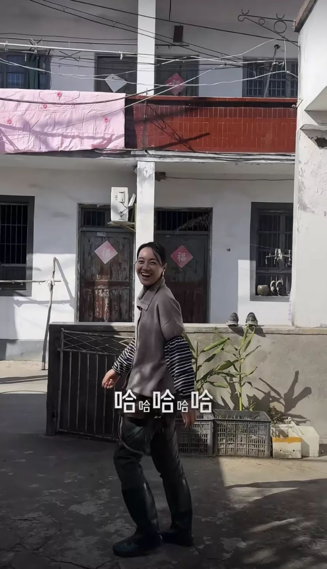 朱丹如烟的模样真接地气啊,她头发有些凌乱,笑起来的模样很有亲和力。感觉朱丹要是拍戏的话,下一步直接可以演下地种田的农村妇女了。