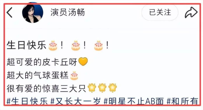 汤畅还晒出现场照,配文“生日快乐,感情稳定”,语气里透着一股“我来盖章”的自豪感。