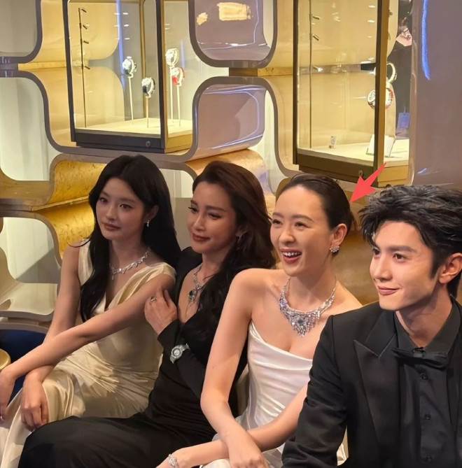 和李冰冰坐在一起时,明明李冰冰的年纪还比她大,但她的发际线后移还更严重。