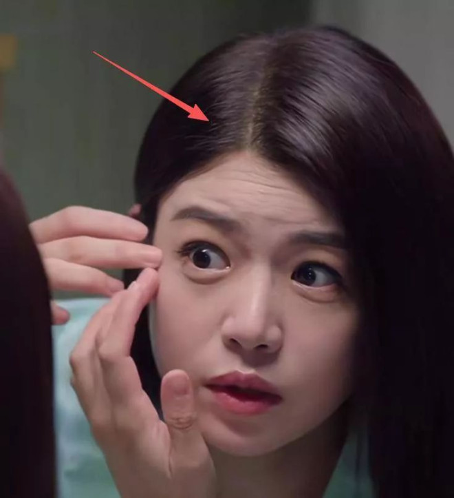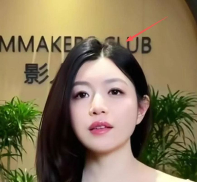 她新剧里的发际线同样很突兀,发量看着是薄薄的一层,同剧女演员蒋欣的发量都足够碾压她。