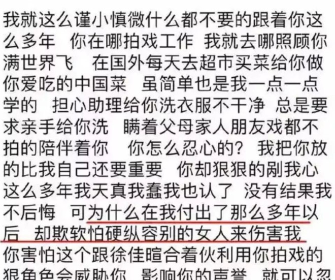 陈昱霖的爆料充满了细节。她说自己为了吴秀波放弃工作,在他拍摄《军师联盟》的近一年时间里,终日待在剧组酒店的房间里为他洗衣煮粥、贴身照料。
