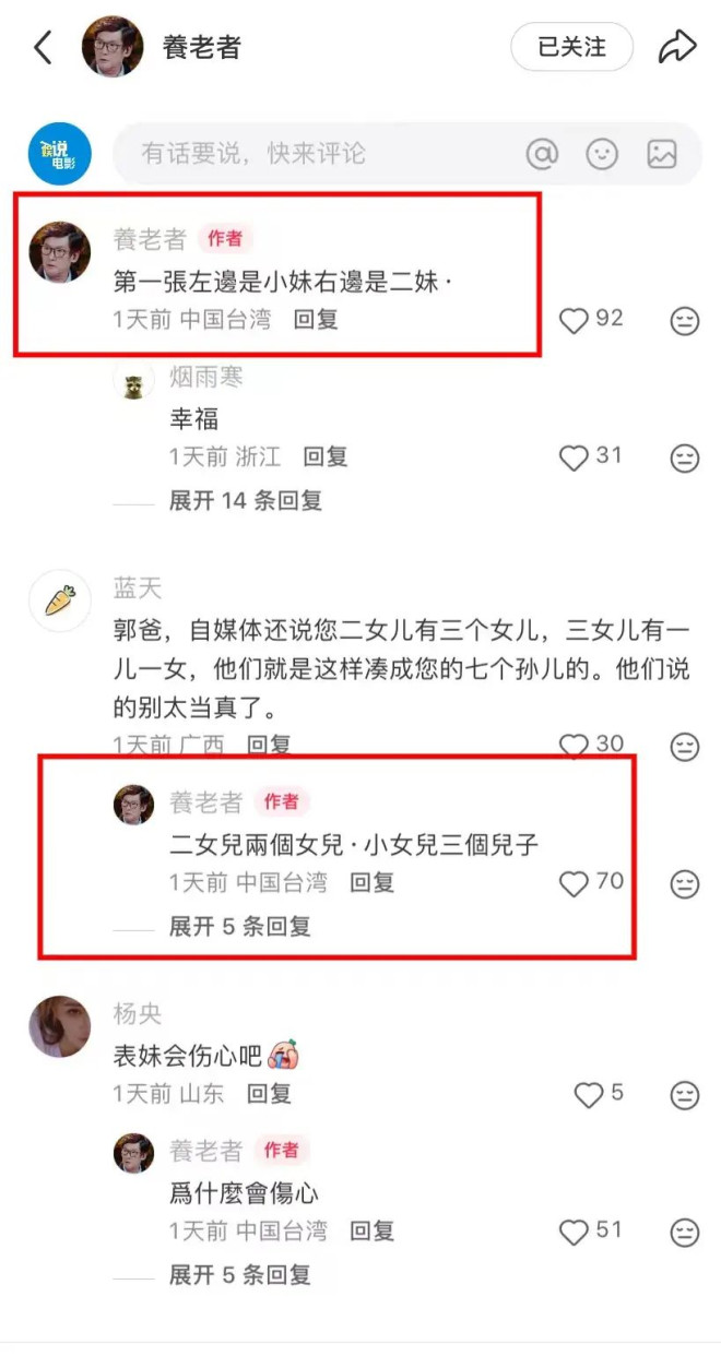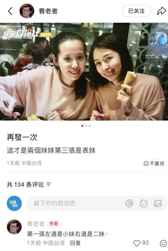第三张照片是表妹,不是亲姐妹,网友说表妹会伤心,郭爸爸表示不理解,为什么伤心,网友可能认为表妹颜值不高。
