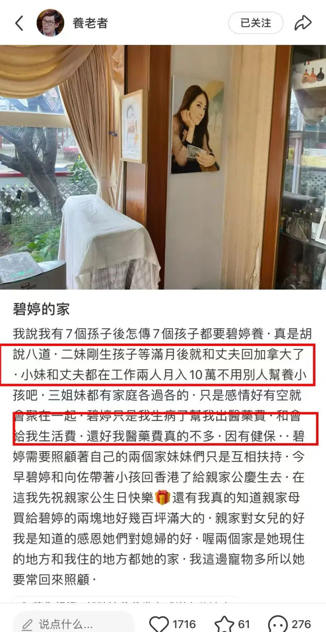 郭爸爸年纪大了,也是需要被照顾,郭碧婷付出很多,也是应该的吧,毕竟她是大女儿。
