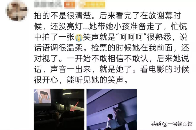 最开始,网友还不确定是不是她本人,但是她的声音实在是太有特点了,尤其是她和孩子说话的时候,网友更是激动,到最后看着对方也要出影院的时候,她激动地拍下了对方的照片。