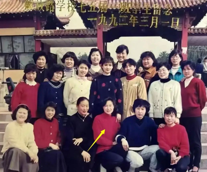 晒出的同学合影中,这位网友的妈妈就是何晴手搭着的女士,站在人群中的何晴,美得太突出了。