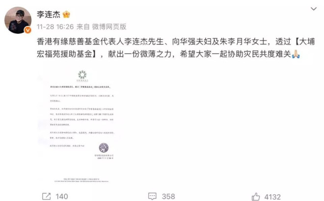 比起很多把公益当人设的明星,李连杰的善举确实让人觉得真诚。