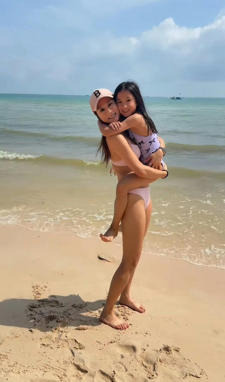 片中见她们一家由朝玩都晚,当中张嘉儿一家到沙滩玩乐时,换上另一套三点式泳衣的她,即使已是两女之母,身材依然Fit爆,网民都不禁留言心心眼。