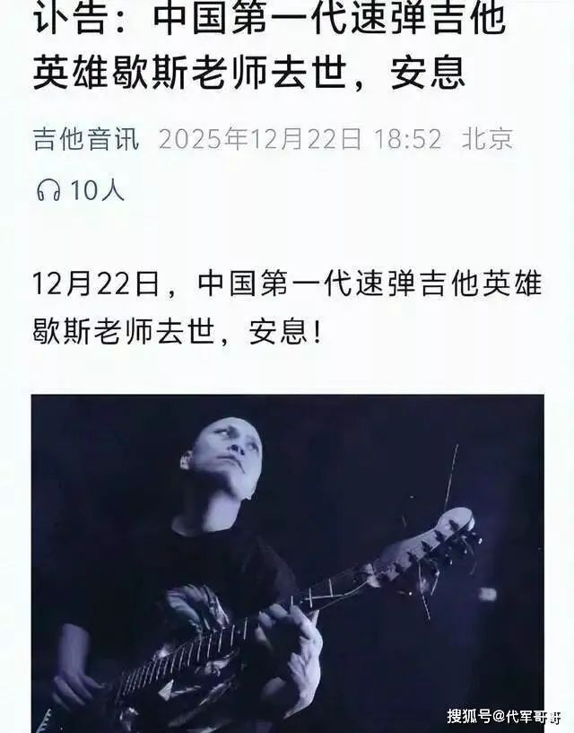 2025年12月22日,华语摇滚乐坛传来沉重噩耗,有“六指琴魔”“中国第一速度”之称的吉他大师歇斯(本名杨长勇)不幸离世,终年60岁。
