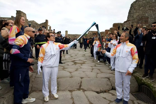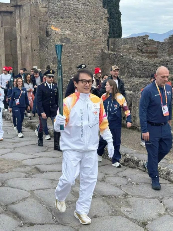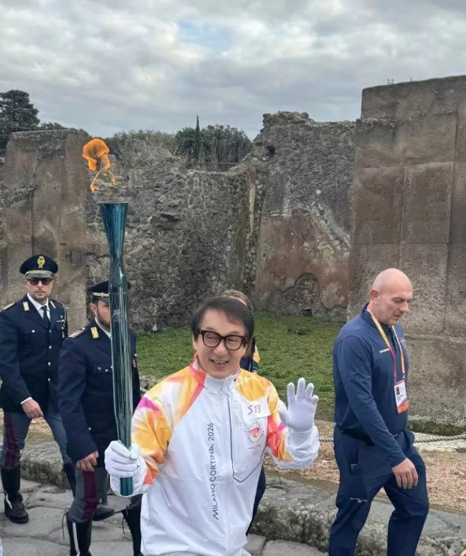 成龙作为2026年米兰-科尔蒂纳冬奥会火炬手,在意大利庞贝古城完成圣火传递。