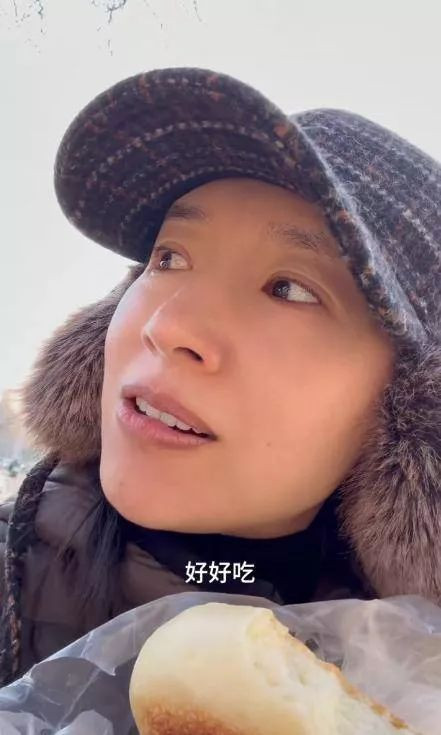 骑了一阵肚子饿了,路过卖白面馍馍的摊位,董洁就停下来买了几个。面对镜头完全不担心形象,拆开包装就大口啃,一点明星包袱都没有。