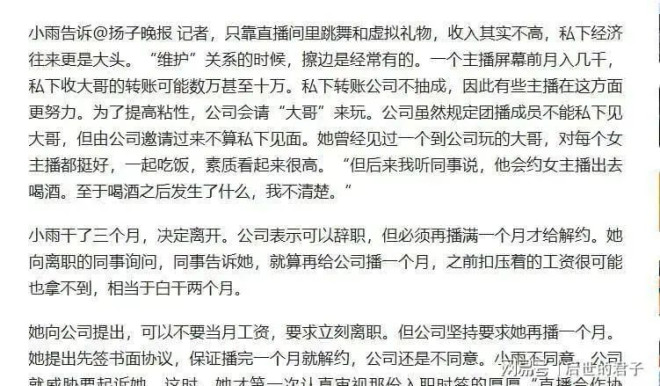 团队中多名18-19岁未成年主播被要求参与擦边互动,公司以“邀请大哥到公司”规避监管。