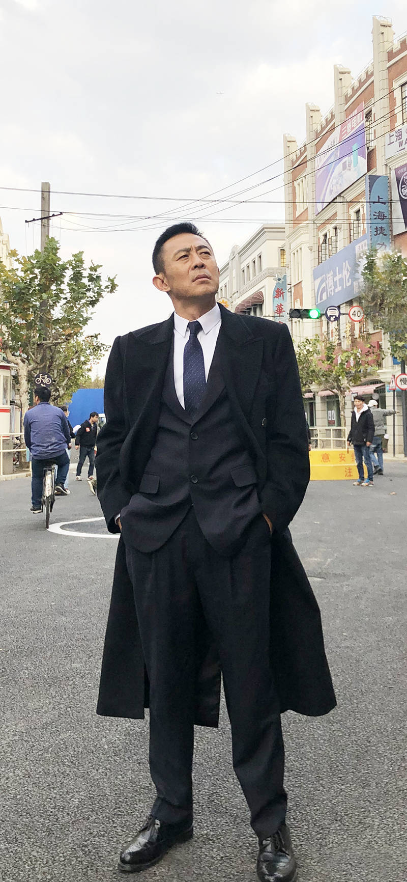 侯勇身着灰色西装,白色衬衣,系着黑色领带,帅气挺拔。他头发乌黑,额头、脸颊、脖子上的皮肤紧致,看不出是58岁的男人。