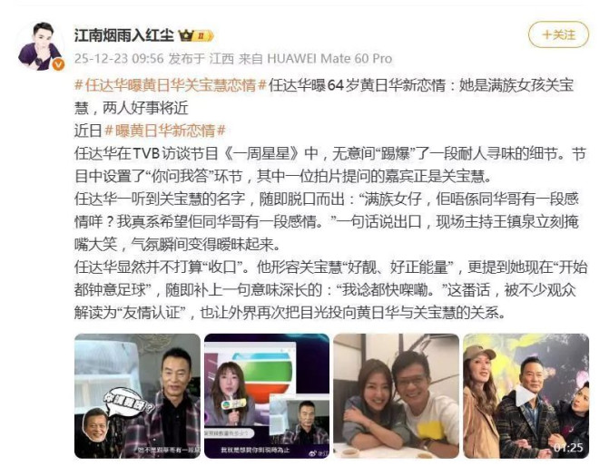 当然,也有冷静派指出,任达华语带调侃,不排除是节目效果。毕竟黄日华对亡妻的痴情形象太深入人心。妻子去世后,他一度崩溃,那句“她是我的头号粉丝,她走了我还演戏给谁看?”曾让无数人动容。近年来,他是在苗侨伟等好友帮助下才逐渐走出阴霾。这份背景,让公众对其可能的新恋情,抱有一种既关注又复杂祝福的心态。