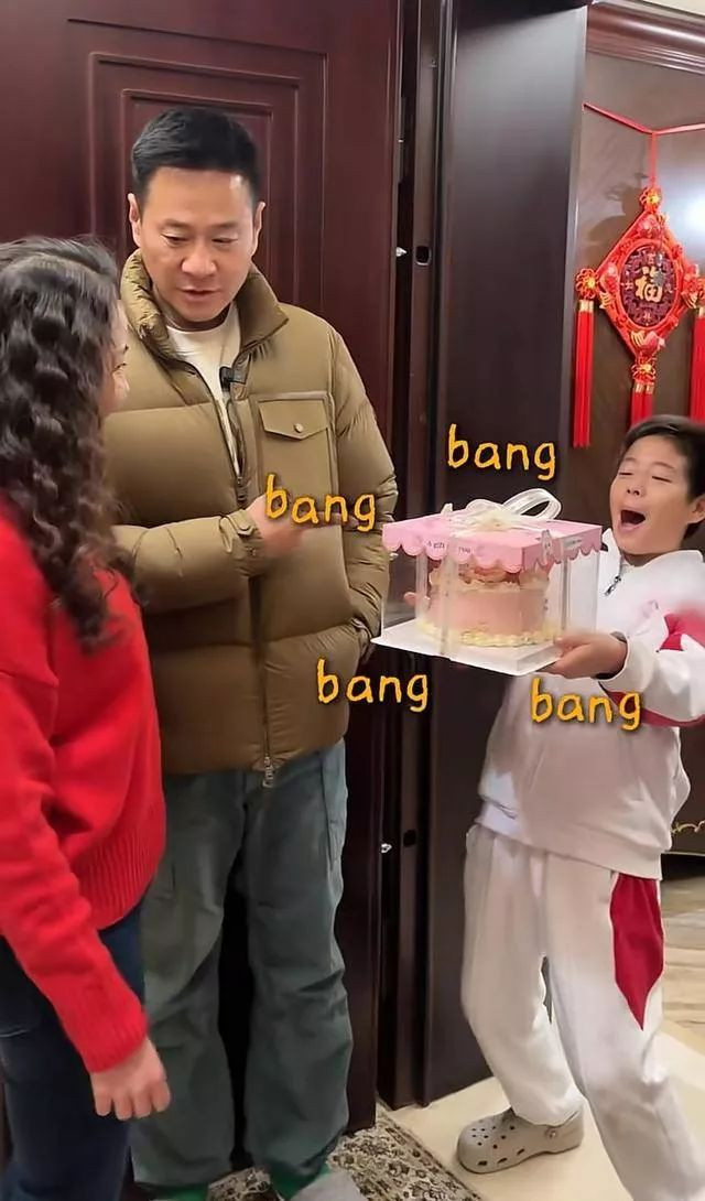 连奕名没有选择奢侈品。他带着儿子钻进DIY蛋糕店。这位荧幕硬汉系着围裙,和儿子头碰头守在操作台前。