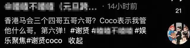 12月29号,Coco与两位好友现身镜头,并在话题中添加了谢贤、coco等标签,而且相关的视频被切分为好几段,由此使得网友热议,难道说,两人当年分手,Coco获得的分手费不够?