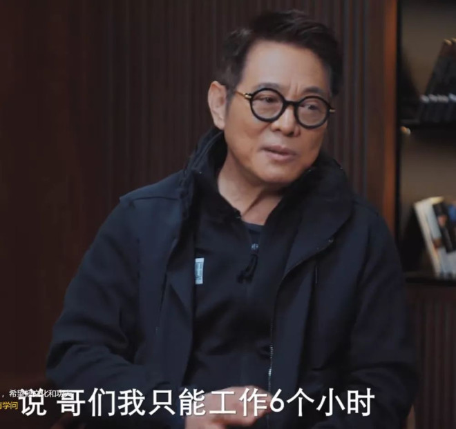 一个重要信息点,这部分李连杰谈到了工作时长,早年拍港片,曾经有过持续拍摄15天的经历,当时年轻还能扛下来,之后年纪渐长、地位提升,在剧组有了话语权,但每天拍18小时也很普遍,相当于除了在片场就是抓紧睡觉休息了。但到了今天,李连杰会直接告诉对方“哥们我只能工作6个小时。”正常来说,演员和片方签的合约,都会至少写上12小时的拍摄时长,如果演员到现场完成妆发还要长一些(为了舒服,大牌明星经常会根据当天拍摄内容在酒店房间完成妆发再出发现场),李连杰的6小时工作时长显然无法满足绝大多数剧组要求,这也是他息影退休的原因之一,不想让自己太累。
