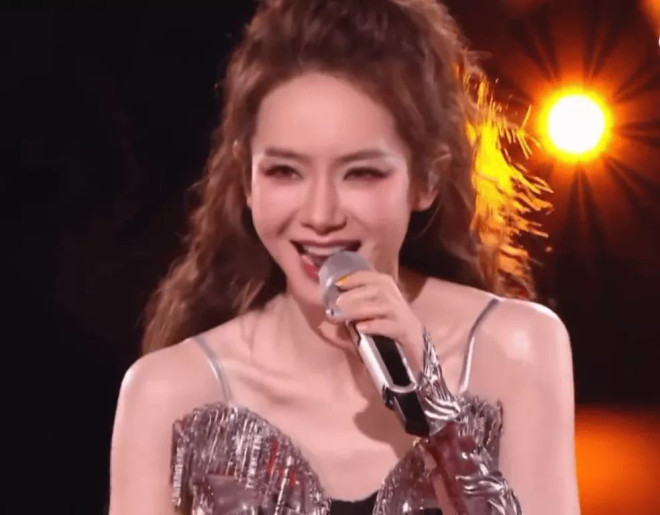 43岁的张韶涵保养有方,面部状态饱满如少女,弥补了造型的不足。她把自己穿成了一棵肩膀发芽树,丝毫不影响美貌。只是全身不好看,即便穿了厚厚的防水台,身材还是五五分。