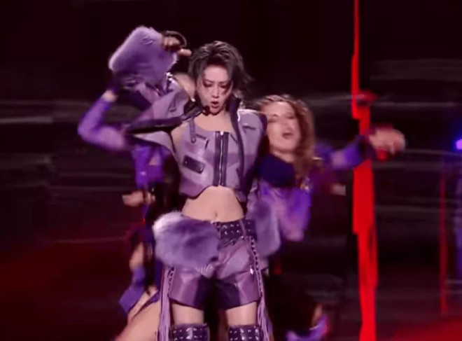 第二套皮草搭修身短裤的造型就很有爱豆感,但是她也没穿出气场,穿上红色皮草显得整个人很木,脱掉之后状态好很多,但是舞蹈能力太差,只能让人注意到四肢太纤瘦,表情管理也一般,整张脸很呆。