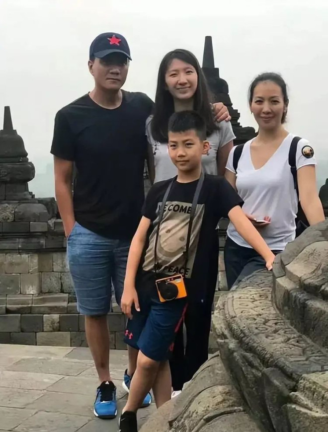 这一次,他们的身边多了一双儿女,一家四口在曾经见证爱情的地方拍下全家福,画面温馨又幸福。