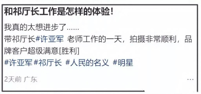 虽然摄影棚的环境一般,但许亚军工作起来很认真。老戏骨拍广告,自然是手到擒来的。