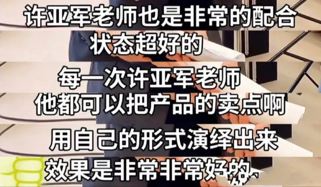 品牌方对许亚军的表现也很满意,许亚军老师非常配合、状态也是超好。每一次都可以把产品卖点、用自己的形式演绎起来。