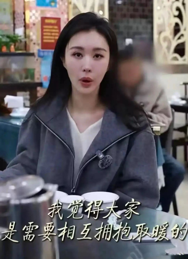 田朴珺在外工作,带着团队吃饭。她穿着黑色外套、留着披肩长发,看起来脸有点肿,给人的感觉不那么自然了,上了年纪、有点医美痕迹也正常。