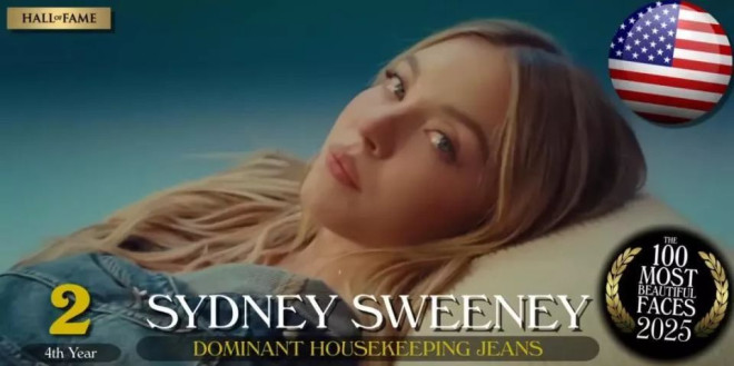 席德妮·史威尼,昵称“悉尼妹”,2024年第九,这次一跃上升至第二名,成为这份榜单中抵抗韩流的最后一位欧美明星。