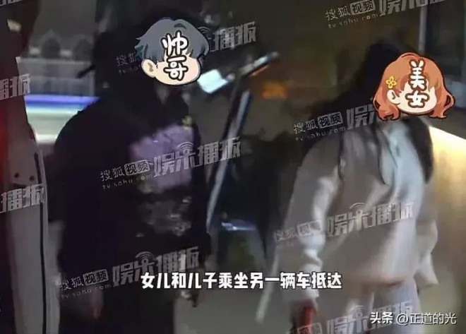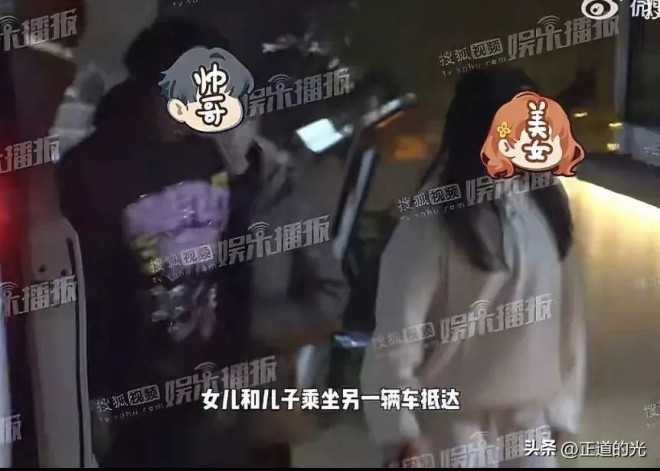 刘涛17岁的儿子身穿一身黑色卫衣配黑色运动裤,又壮又帅,长得眉清目秀,身高近1米8.两个孩子下了保姆车后就快速跑进烤肉店了。