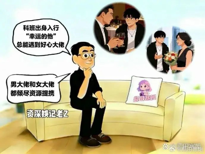 漫画中,资深娱乐记者老Z,指出顶流小生是科班出身入行,“幸运的他”总能遇见好心大佬,男大佬和女大佬都倾尽资源提携他。