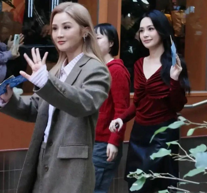 两个人的粉丝还是蛮多的,现场聚集了很多观众。阿娇一头大波浪的卷发,穿着红衣短裙明媚艳丽。
