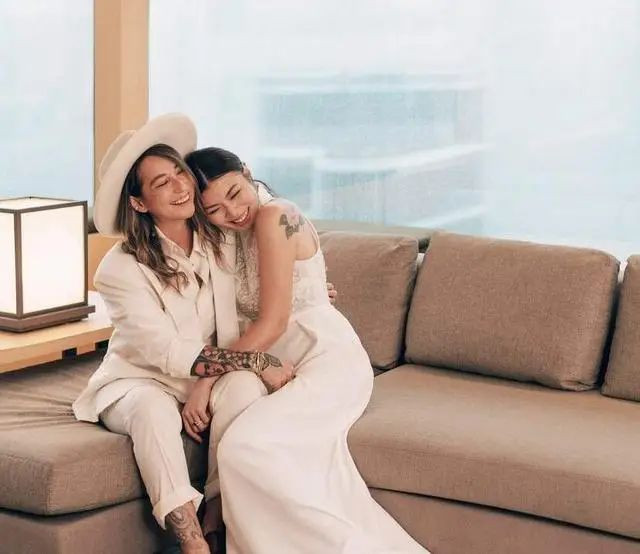 另外,香港知名男星王敏德的女儿王曼喜,在几年前也是和同性爱人陈逸宁步入了婚姻的殿堂。