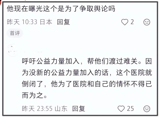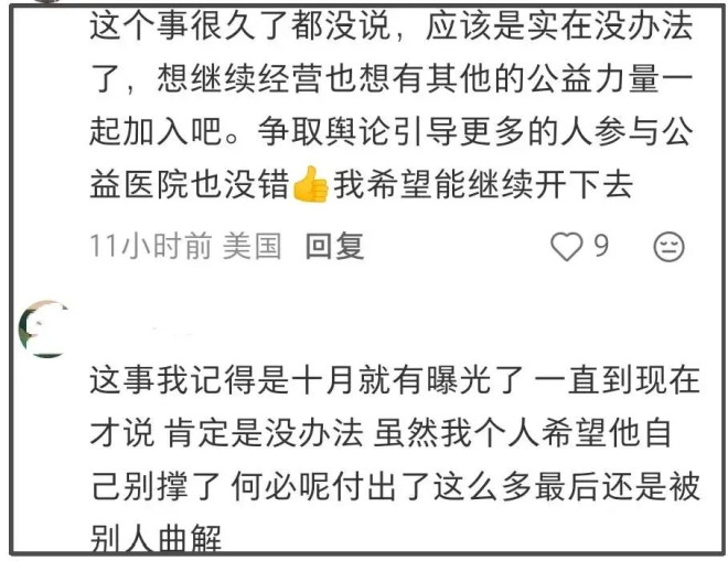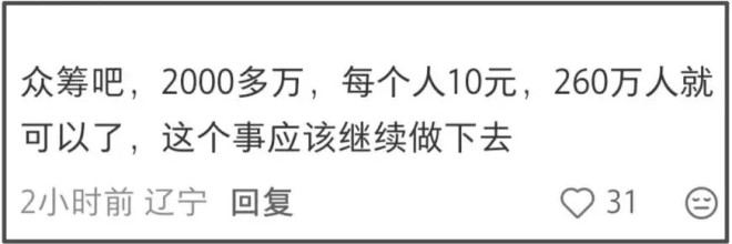 不少网友看到李亚鹏的解释,纷纷为他抱不平,并努力帮助他寻找途径解决问题,有网友主动表示自家医院内部可以提供两万平米左右的病房使用,有网友建议他发起众筹,每人10元累积260万人就可以让医院存活。