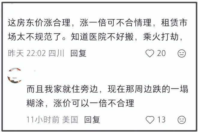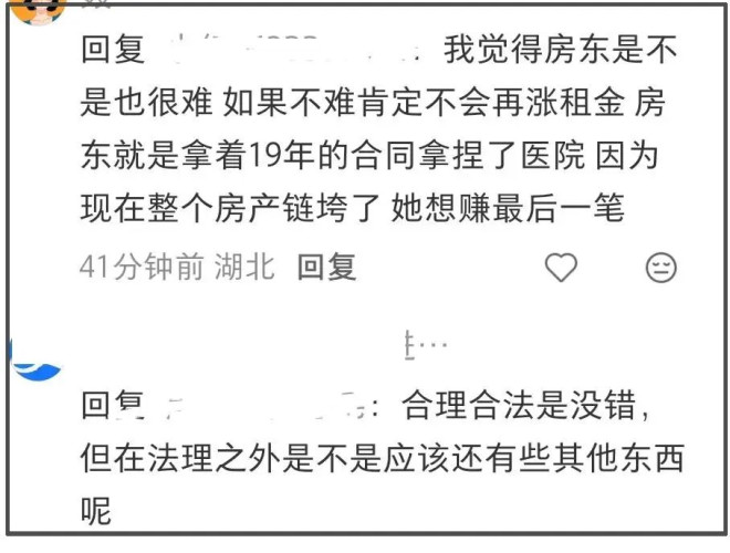 当然,也有网友认为房东涨价可能也是经济状况出问题了,合法维护自己的利益没错,只是法理之外也应该有其他的东西。