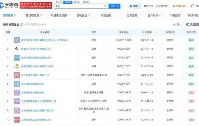 天眼查数据显示,李湘关联的20家企业中,有14家已经完成了注销,注销比例高达70%。