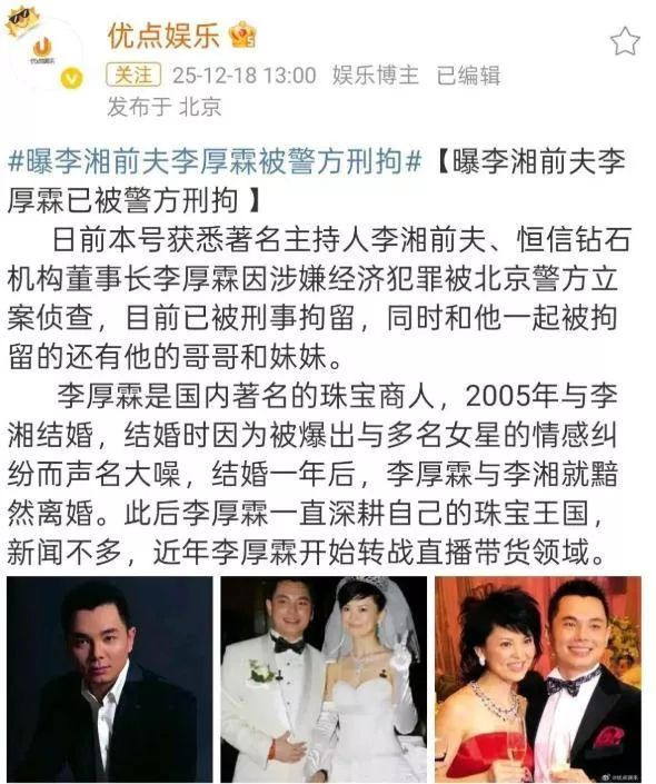 这还没完,李湘的第一任丈夫李厚霖,那个曾送她3克拉粉钻的“钻石大王”,现在也深陷泥潭。