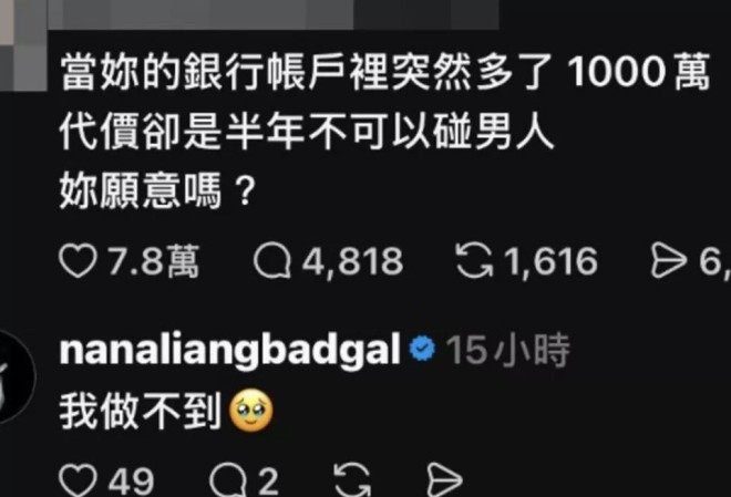 不过,在这些脆弱、重生的另一面,梁云菲还总是大大咧咧表达自己对情情爱爱的向往,做了子宫切除手术后,有网友问她:“当你的银行账户突然多了1000万,代价却是半年不可以碰男人,你愿意吗?”