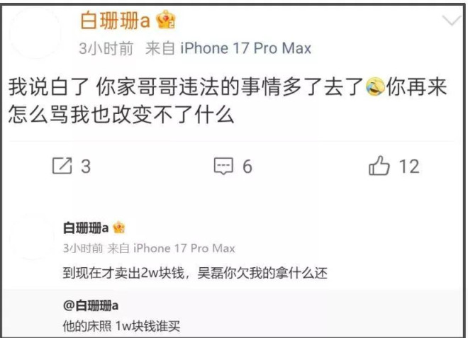 2026年1月还没过完,司晓迪2.0就出现了,一位名叫“白珊珊”的博主点名吴磊,声称手头有他的床照,瞬间引发热议。