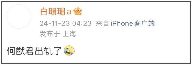 接着,爆料女主通过大号白珊珊甩出一句“何猷君出轨了”。