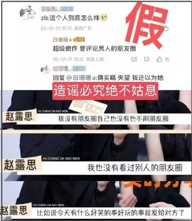 赵露思的粉丝则拿出了赵露思本人采访原话,赵露思说过自己没有朋友圈也不刷朋友圈。