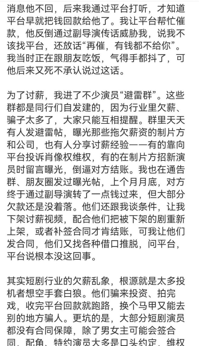 这些制片人就是摸准了从业者的心态,恶意拖欠薪资,口碑坏了就换个马甲继续招人拍戏。
