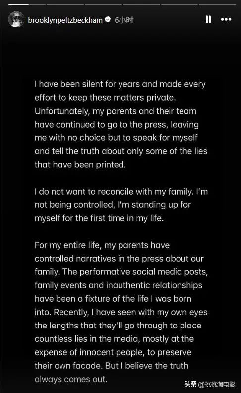 本周一,这位贝克汉姆家的长子在 IG上发布了一份长篇声明,痛陈要揭露“被掩盖的真相”,以此回击父母长期以来针对他和妻子妮哥拉·佩尔茨“向媒体散布谎言”的行为。