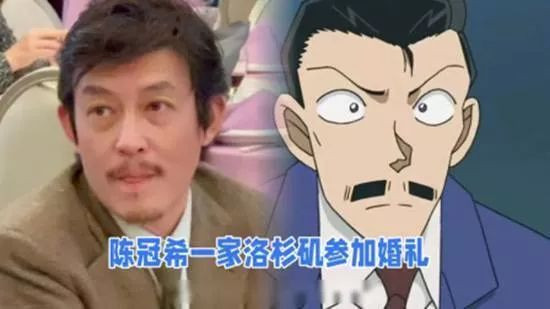 陈冠希在婚礼现场以蓄小胡子、蓬松发型的休闲造型亮相,标志性的胡须和眯眼神态被网友制作成与《名侦探柯南》中“毛利小五郎”的对比图,相似度极高。